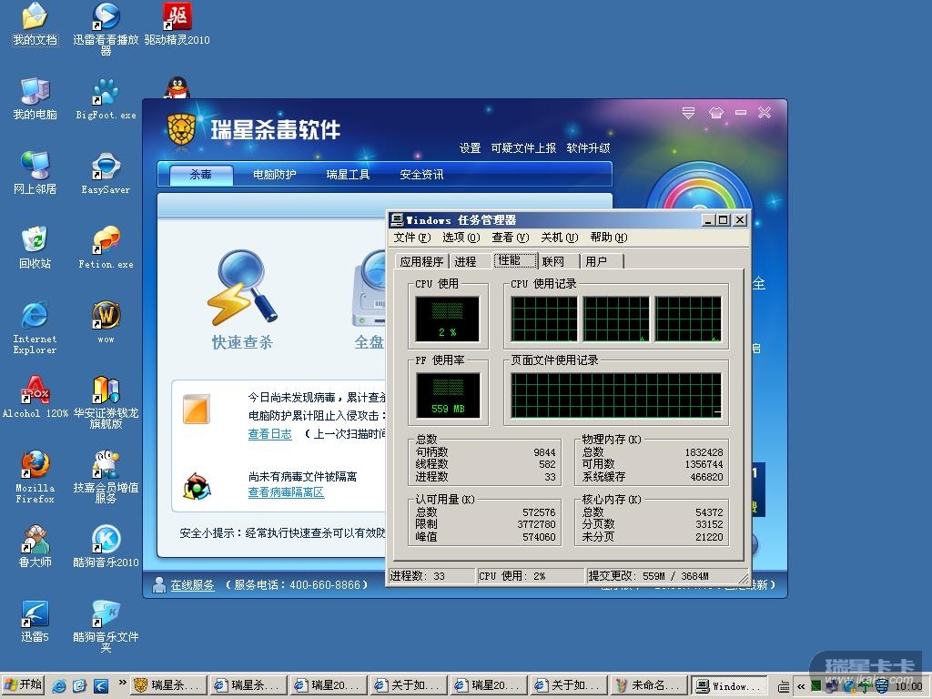 AMD440 2G内存 前段时间用卡巴占用内存不到900MB 卸载后装360是980MB 但为啥用瑞星到了1.36G 我还没开YY情况下
