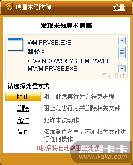 回复:系统程序wmiprvse.exe怎么成未知脚本病毒了??