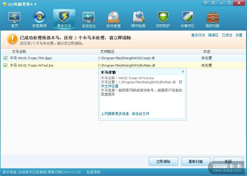 [求助] QQ电脑管家查出木马,但是瑞星查不出来