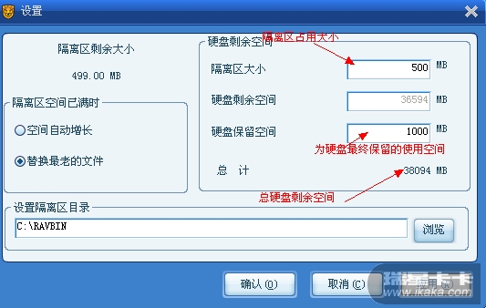 请问病毒隔离区的设置空间里,隔离区大小和硬盘保留空间两者是什么关系?