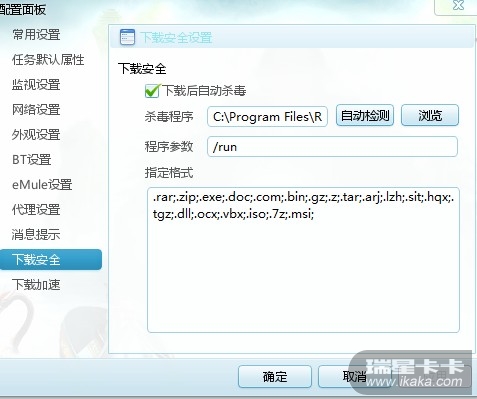 每次迅雷下载完文件后,瑞星只是弹出界面,但是不杀毒。我的迅雷设置已经设置了自动杀毒,并且关联的是瑞星杀毒软件。附件是我的迅雷设置。