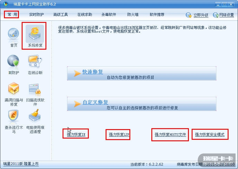 3 如果切换不了工作模式,请试着修复一下瑞星杀毒软件。