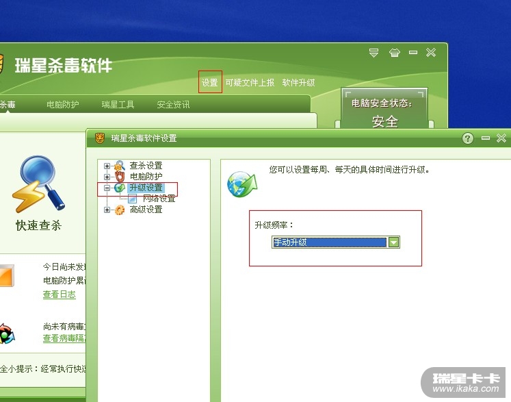 及时升级老跑出来,告诉我检测到最新版本20.29(好像是),但我的瑞星是23.多的,如果点升级就会告诉我“获取升级文件失败”。直接打开软件也是显示最新版本。及时升级老跑出来让我错误的升级,有什么办法解决错误。
