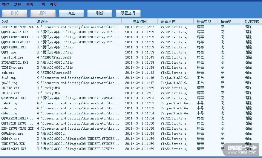 最近一个月无论是,瑞星2011,还是瑞星全功能2011软件都是误杀率非常高。文件实时监控或是全盘查杀,都是吧qq聊天,qq游戏,qq影音 等。。。。。系列软件给查杀了。导致该软件无法启动。如果是装有双系统的电脑,瑞星会把另一个xp系统杀掉导致无法启动,或蓝屏。