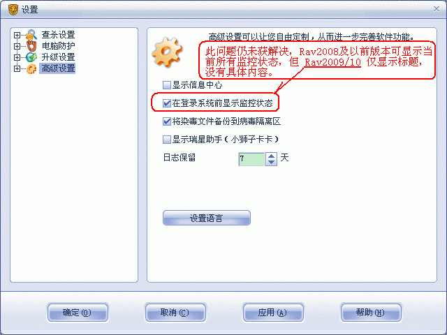 就勾选了 “在登录系统前显示监控状态 ” 仍无法显示具体监控状态这一问题而言,Rav2010/2011  没有变哦。
