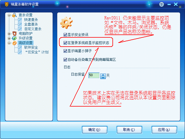瑞星卡卡安全论坛个人产品讨论区瑞星杀毒软件瑞星杀毒软件2011 注意:Rav2011登录系统前仍无法显示具体的监控状态