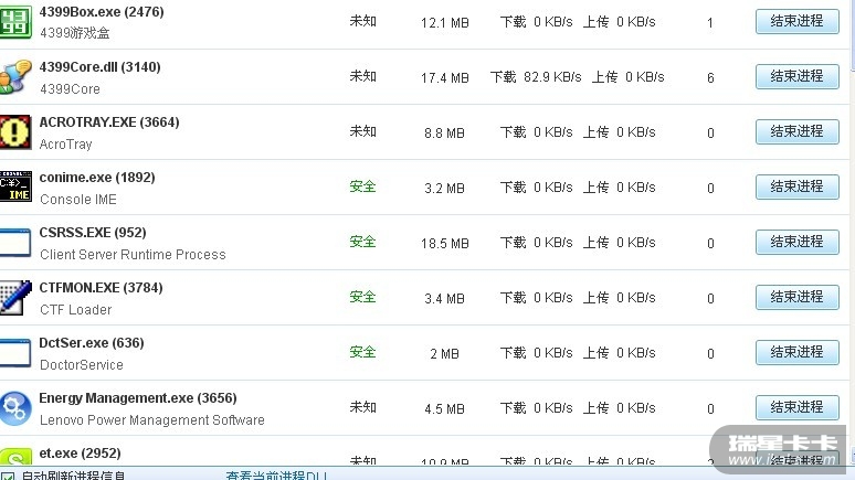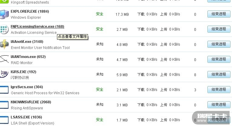 RavMonD.exe为瑞星监控进程,显示为系统所有联网程序的流量总和。