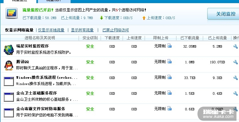 在打开IE或打开一个程序以后,先是发现,上传流量100KB/S,然后是CPU占用50--80%