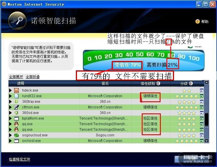 若顿通过扫描受信任的文件 ,在扫描时跳过这些 文件来加快扫描速度