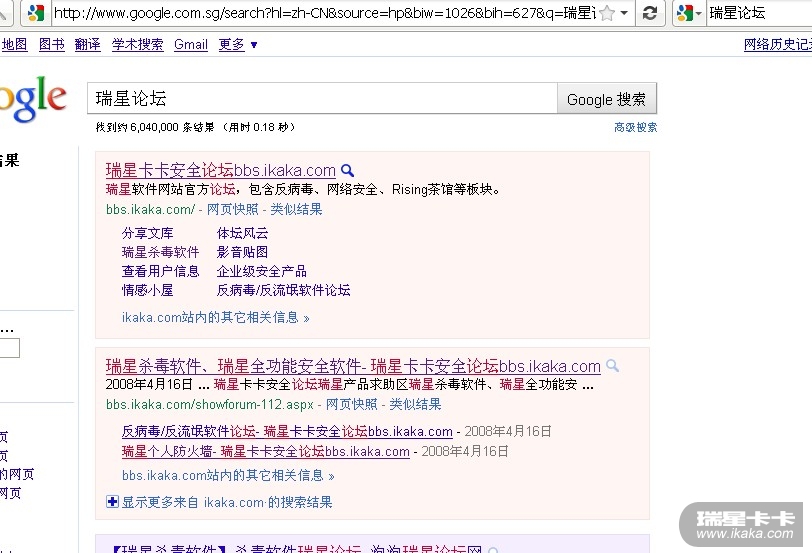 回复:瑞星的搜索引擎保护 不支持新加坡google