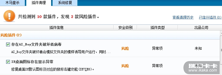 ,这个问题前面也出现过,我开始把瑞星卸了装毒霸问题解决了,但是昨天晚上把毒霸卸了换瑞星的时候又出现了这个问题,这让我用得不放心呀。