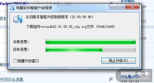 昨天重做了系统(win7 32位系统),安装瑞星09版,升级时提示“下载 RSVPATCH/22640303.rp 失败,请您换其他时间段尝试。”。已经重试了最少30次,每次都是这个提示,无语了。哪位大侠出手拉一把?谢谢了!!