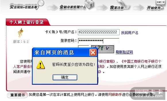 登陆工行总是显示密码长度应为四位以上