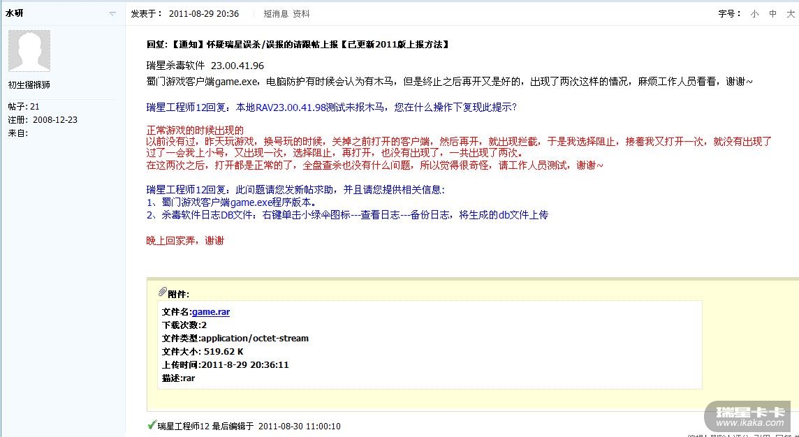 此问题正在处理中,有结果会尽快和您联系,感谢您对瑞星的支持!