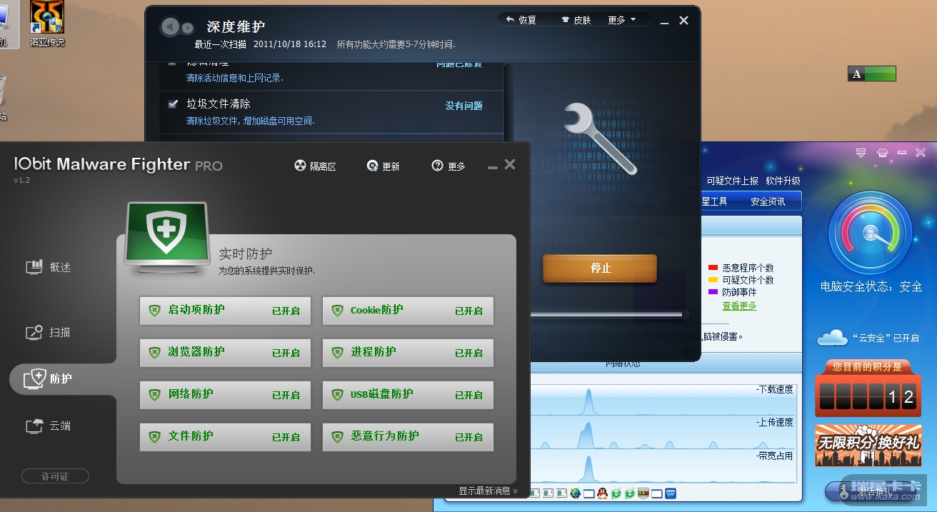 瑞星全功能+IObit Malware Fighter+AdvancedSystem(不随机启动,需要时打开)