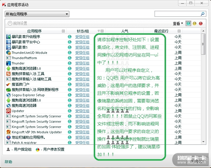 瑞星08版有 程序控制 ,这么好的功能为何要取消呢?