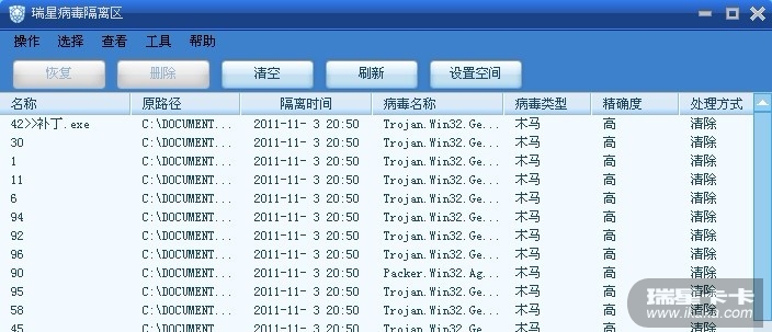 修复瑞星杀毒软件了,杀毒后,瑞星病毒隔离区不隔离病毒文件了,把原来隔离的文件也不显示了。只显示“尚未有病毒文件被隔离”。