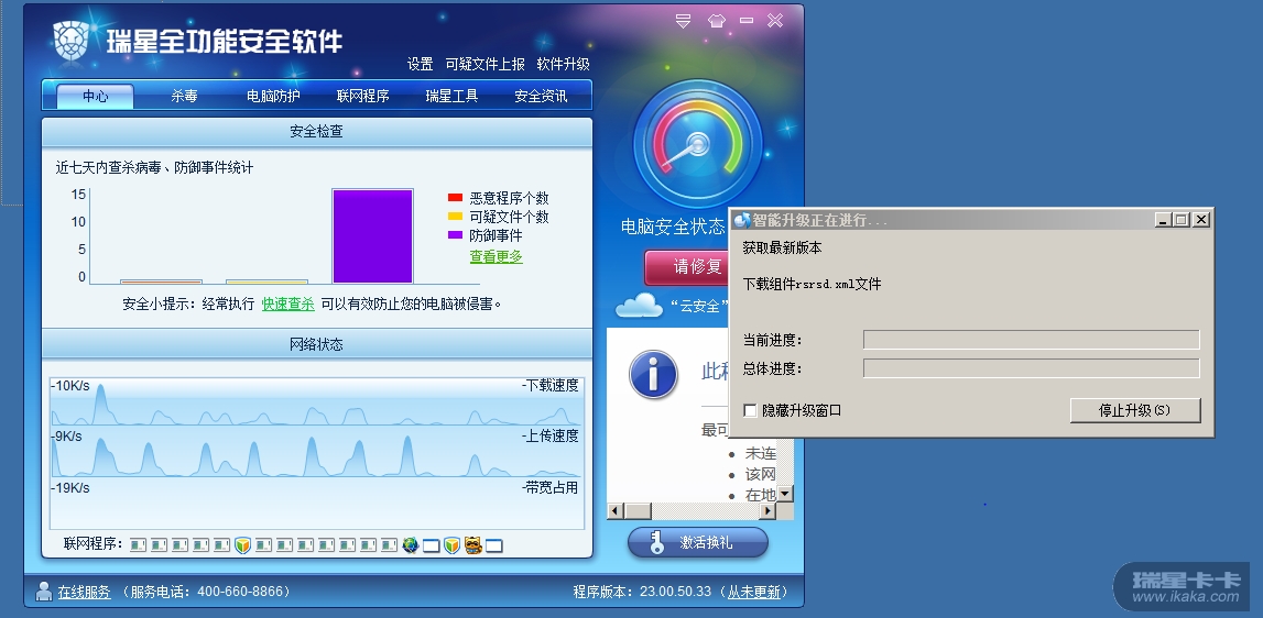 我今天装了瑞星 老是升级失败 重装过也不行 用的是铁通 W732 位系统