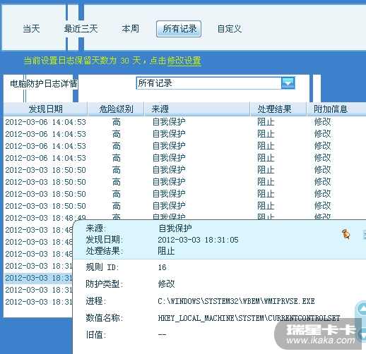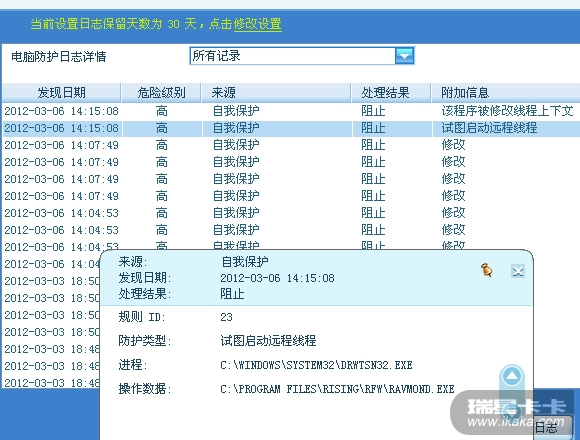 我的电脑最近总是自动重启,能进入XP,还可以用一会儿,然后会莫名其妙的重启,我看了瑞星日志,如图