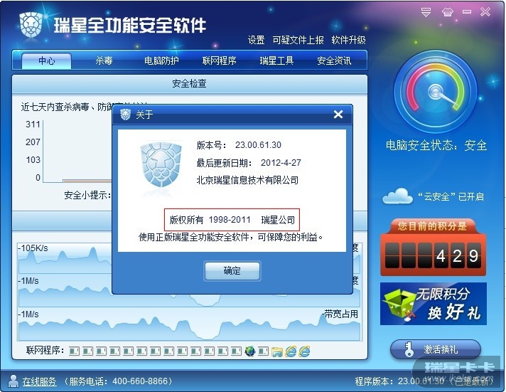在使用瑞星2011的时候,发现了一处不合理的地方。(如图所示)