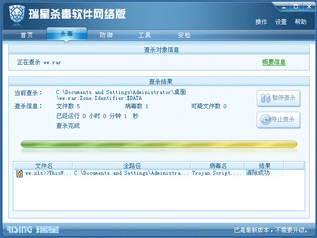 lz用瑞星全盘杀毒吧,瑞星可以处理这个病毒的。一定要全盘杀毒。在未查杀病毒前,请勿打开染毒的xls文件。