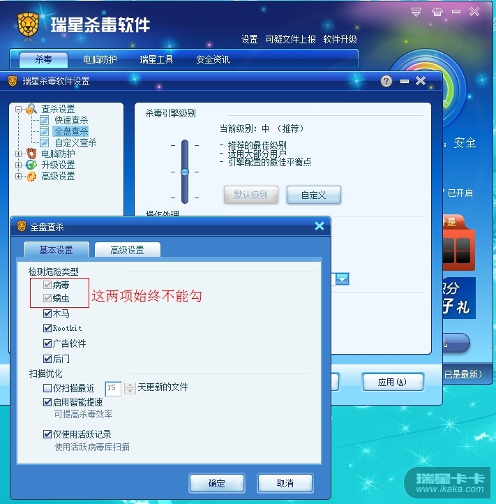 我今天发现瑞星杀毒软件不能杀毒 只能杀木马 拦截广告等等~!