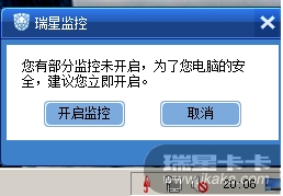 windows 7 启动后,任务栏的ris小伞是红色的,瑞星弹出是否开启防护的询问框