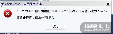 RavMonD.exe应用程序错误:该内存不能为“read"