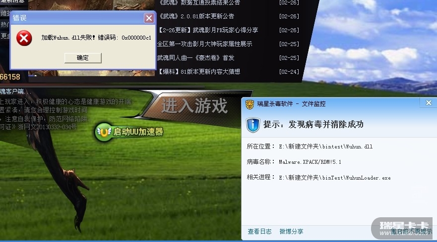 在更新游戏【武魂】的时候,有个文件被瑞星误删除了,帮忙搞一下吧