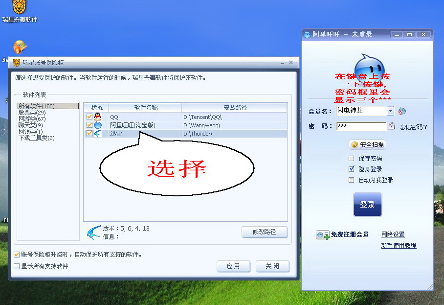 怎么装了保险柜后阿里旺旺无法正常登陆啊?在键盘上按一下按键,密码框里会显示三个***???