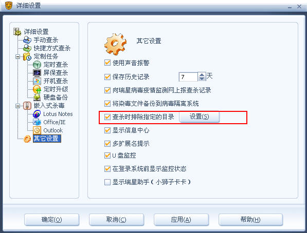 1.瑞星的实时监控:在这里设置后,在平时的操作过程中,瑞星就不对该文件进行监控。