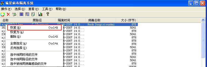 2.把文件恢复出来,压缩后上报瑞星,说明是误报