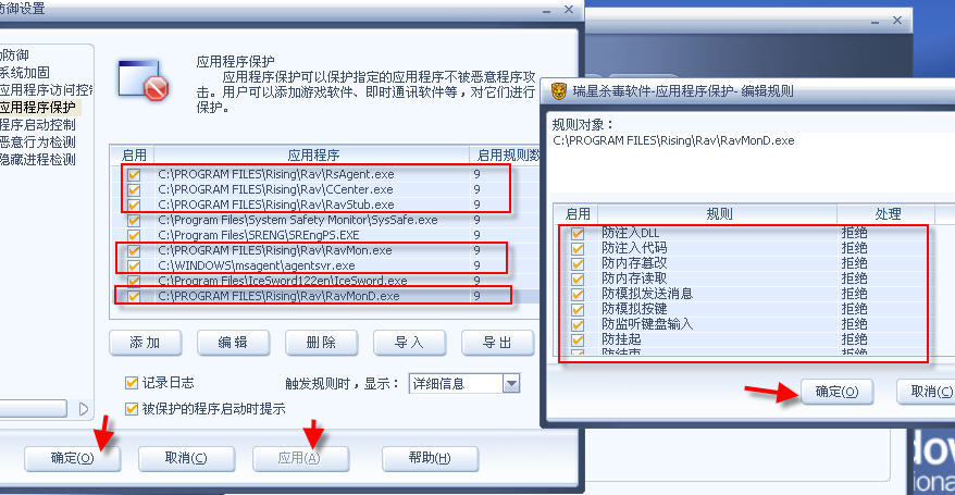 结论:恰当使用瑞星的“应用程序保护”设置,可以使瑞星变得“结实”些。