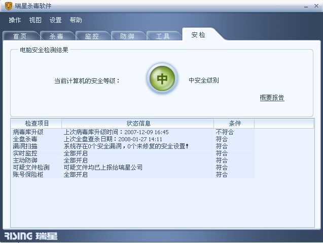 可是打开瑞星杀毒软件后首页的病毒库发布日期一直是2007-12-09