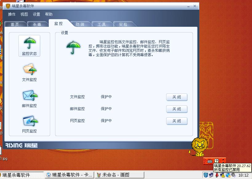 大家帮帮忙吧 杀毒软件不知道怎么回事了 监控全关 可是在主界面 却是开着的