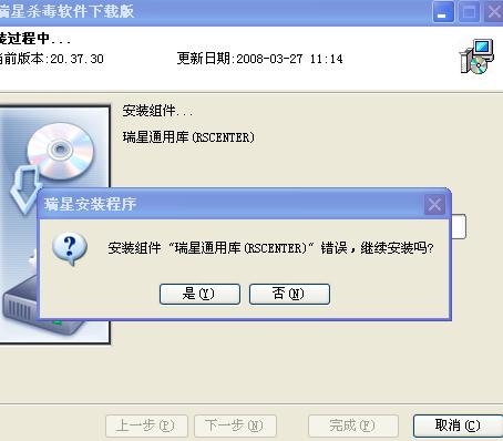 先前我用的瑞星杀毒软件突然不运行了,然后我又重新从网站下了一个,然后安装时它提示"瑞星通用库错误 你继续安装吗?"我点继续.安装完后,开机查杀正常,但开机后瑞星却还是不能运行,打开都打不了5555555