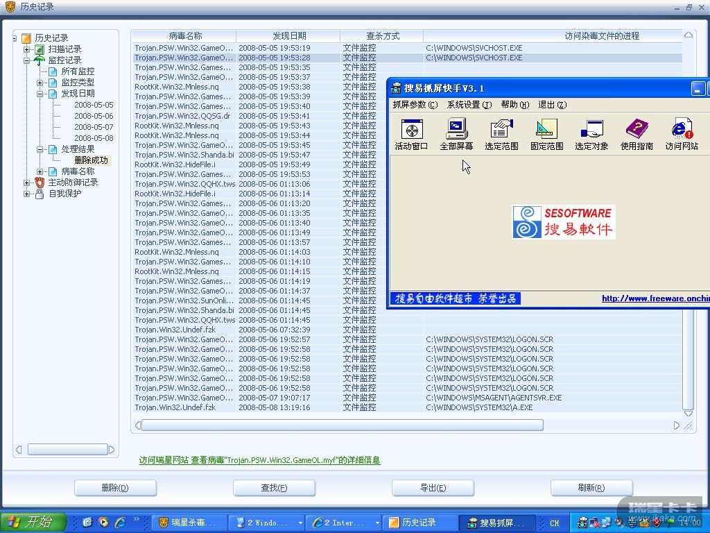 用了几年瑞星(正版,花了200大洋),发现瑞星太差,我这几天,每天都在杀毒,提示已删除,但每天都冒出来,真烦人,病毒是