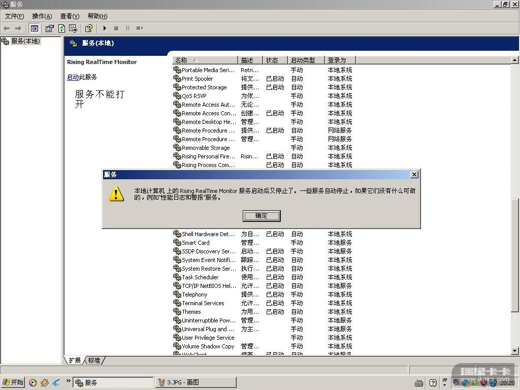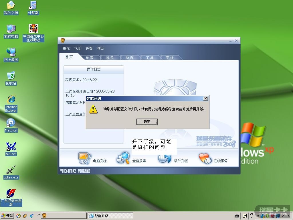 我的瑞星监控打不开,且杀毒软件不能升级(情况不同置顶帖)