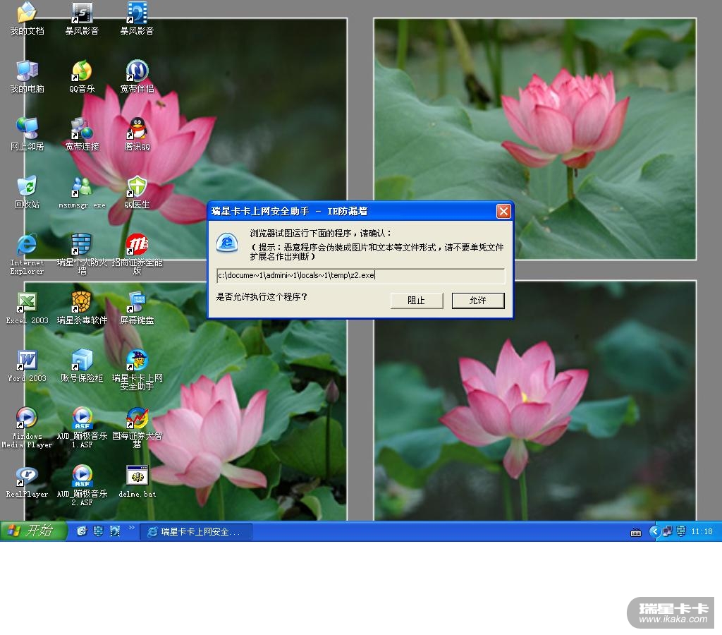 上了一个每天必上的论坛,出现一关于IE防漏墙的画面(截图请看附件),立马有三个异常情况:1、瑞星杀毒软件被关闭(我的瑞星杀毒软件是单机版的);2、桌面自动出现一个文件名为delme.bat的文件;3、系统时间被改,比实际时间整整少了8年