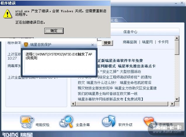 [求助] 瑞星不能升级?出现ntsd.exe错误