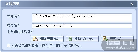 我们公司目前使用的是瑞星2007网络版,同时也有自己的管理系统,但是每次杀毒时总是把管理系统下的一个文件当成病毒,一旦选择删除就没有办法在使用该系统,如果把该系统的安装文件夹设置成免杀,倒是可以解决。但是我想问一下在不设置的情况下能不能不出现这个提示,这个文件确实不是病毒。提示如下:请高手或瑞星公司能够给解答一下,谢谢!!!!!!!!!!!!!!!!!!!!