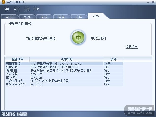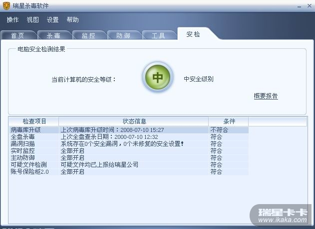 系统时间正确啊,我的瑞星也升级到最新版本,这一项不能做到符合吗?