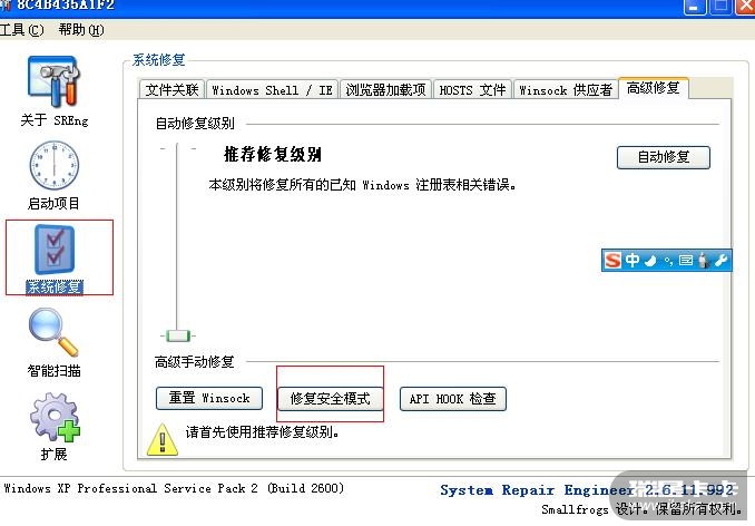 用SREng修复下安全模式,应该怎样修复,谢谢