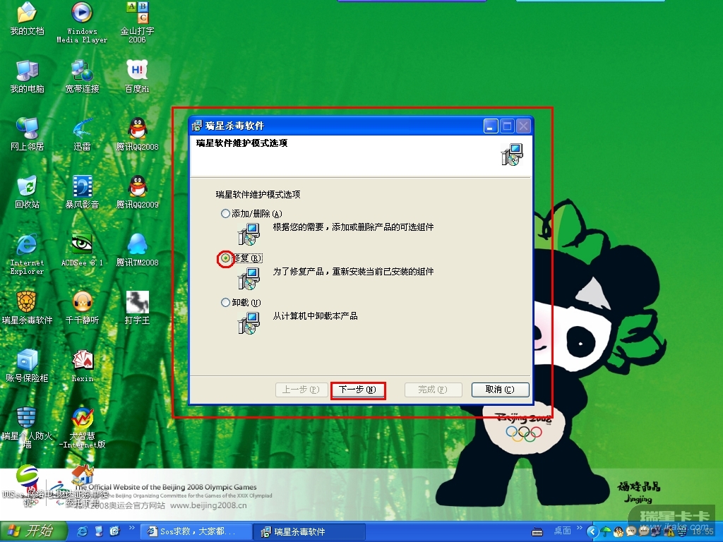 瑞星全盘杀毒一点就自动关闭,主动防御也无法启动,升级也不能升说要执行程序修复功能,以上问题如何解决?还有程序修复功能在哪弄啊?