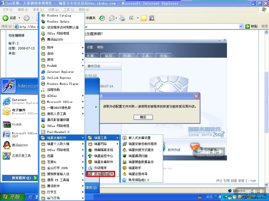 360卫士、新毒霸破坏瑞星杀毒导致升级失败(升级提示XXXXXXX 800006)的解决办法