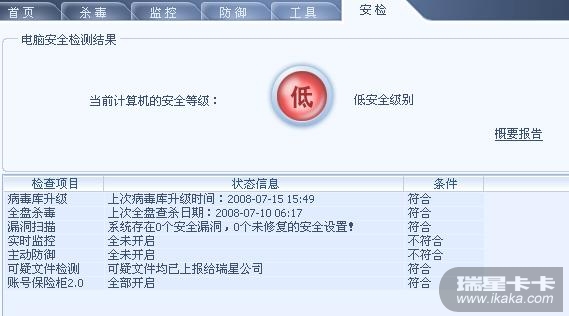 今天想全盘杀毒是发现我的安全检测是低 我一看是因为实时监控和主动防御全未开启