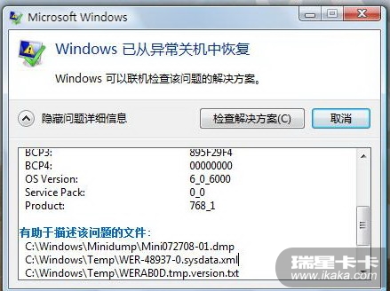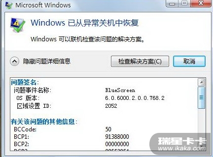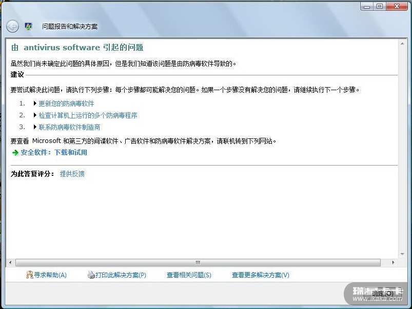 我的电脑是vista系统,装上瑞星后经常蓝屏,重新开机后显示以下窗口,我该怎么办啊?