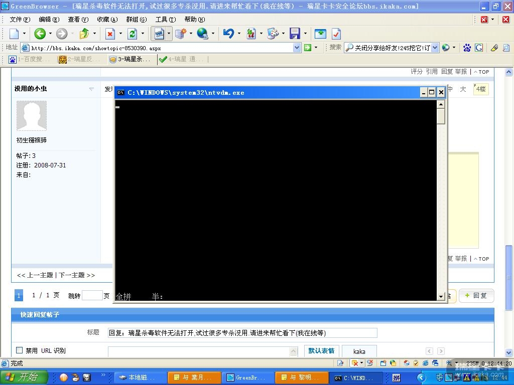 回复: 瑞星出问题了,很奇怪.监控不能用,不能升级.主程序不能连网等...