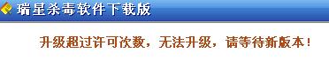 瑞星有升级次数的限制,同一个序列号和ID升级到同一个版本的次数只有3次,过多升级就会出现提示!