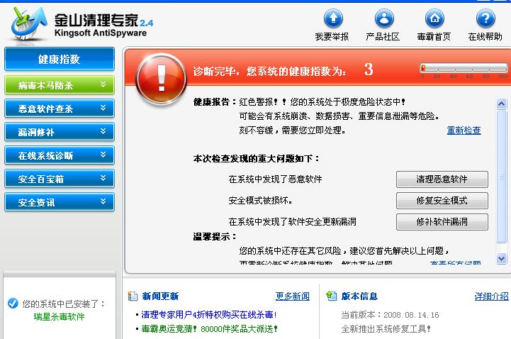 [求助] 反复有毒,瑞星不能开,安模破坏